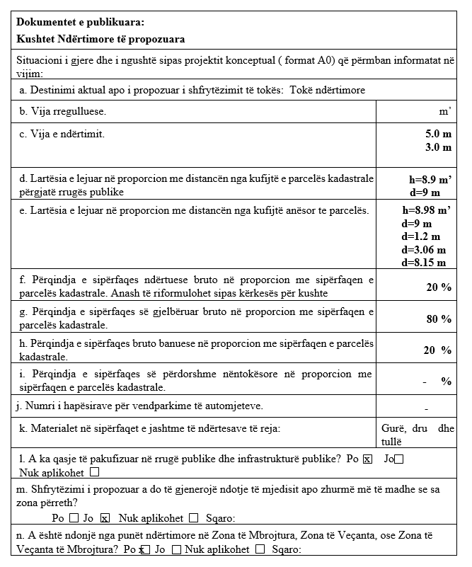 Në Ministrinë e Mjedisit, Planifikimit Hapësinor dhe Infrastrukturës, Departamentin e Planifikimit Hapësinor, Ndërtim dhe Banim është dorëzuar kërkesë për Kushte Ndërtimore nga Burim Ramadani me nr. të protokolit 8289/25 të datës 10.11.2025 për parcelën kadastrale 00114-7, që ndodhet në Fshatin turistik në Prevallë në kuadër të Parkut Kombëtar “Sharri” në Komunën e Prizrenit.