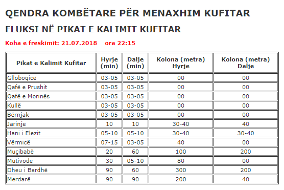 Derisa një natë më parë, kolona ka kaluar gjatësinë prej një kilometër e gjysmë me pritje deri në 5 orë, në pjesën më ta madhe të së shtunës, ajo është raportuar të jetë rreth ose mbi 100 metra – me pritje prej 60-90 minuta.